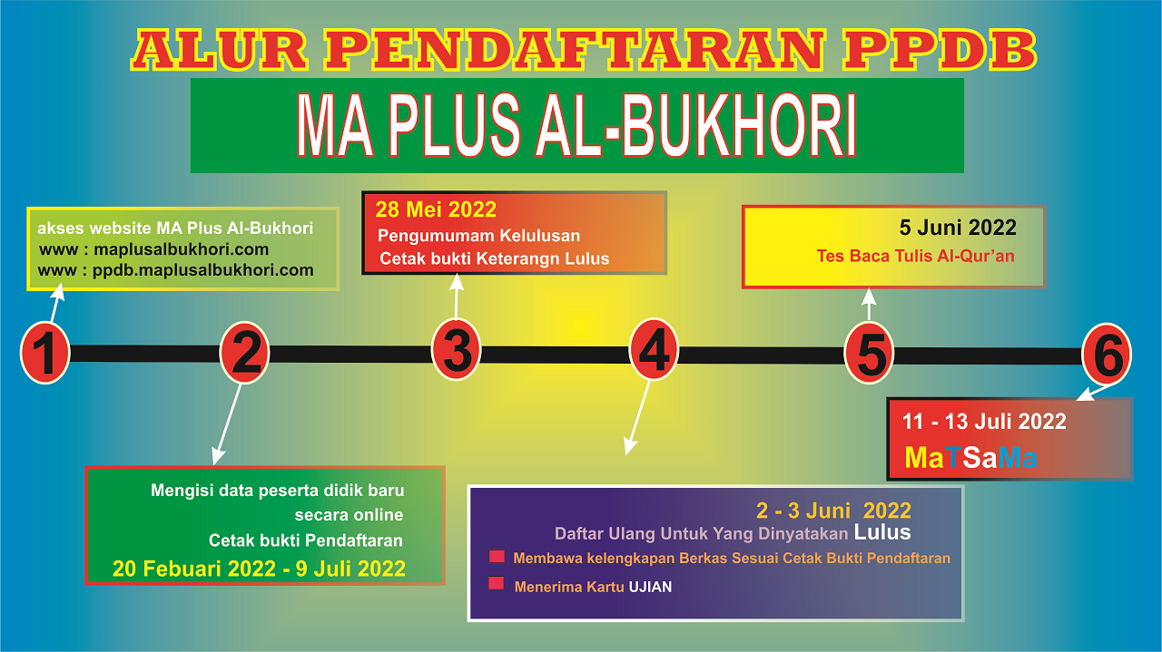 MA PLUS AL-BUKHORI menyediakan PPDB secara online, agar proses pendaftaran dapat dilakukan kapanpun dan dimanapun, praktis dan cepat. Terlebih di masa Pandemi covid-19 yang mengharuskan diberlakukannya PPKM.